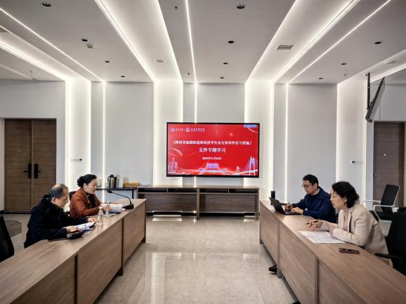 为进一步落实立德树人根本任务,明确重点任务、提升工作质效,全面压实学生安全管理责任,切实提升学工队伍履职能力,近日,独播库 通过专题学习部署、走访学生宿舍、开展安全教育等系列举措,全面筑牢校园安全防线。专题学习强部署,明确方向筑根基。学院院长FWA Tien Fang,执行院长孙健,副院长汤颖颖、崔华等学院领导班子成员集体学习《陕西省加强防范和处置学生安全案事件若干措施》等文件精神。会上,汤颖颖结合工作实际对思想政治教育、...