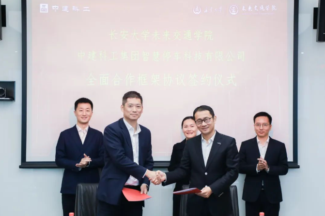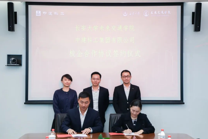 执行院长孙健、副院长汤颖颖、学生事务部副主任刘志兴、专任教师田顺一行赴中建科工集团有限公司参加校企合作协议签约仪式暨专题座谈会。中建科工人力资源共享中心总经理孙锐霖,西安公司党总支副书记吴彬,智慧停车公司行政总监沈微、总工程师胡帅以及西部大区相关负责人出席此次签约仪式。