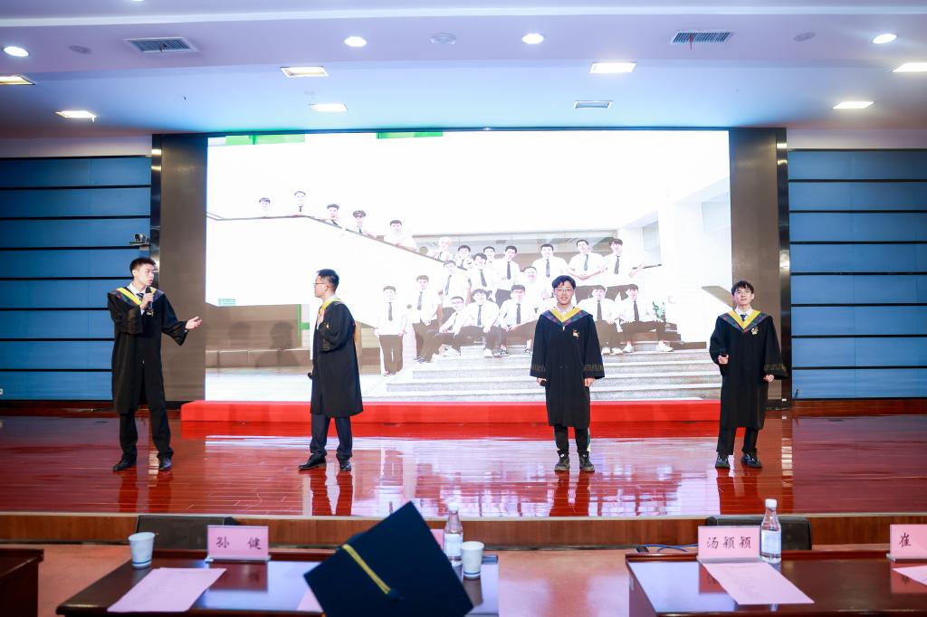 导师代表杨旭对毕业生寄语。他以《面向未来,挥斥方遒,活出精彩》为主题讲授最后一课,指出要努力工作,保持进取心,保持韧性,加强思辨思维,加强换位思考,找准自身的核心价值,为团队创造价值,实现自我抱负;希望同学们步履所致,皆有繁花似锦;半生归来,仍是当初少年。