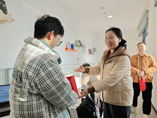 祝福礼包内,不仅“能量满满”的士力架、寓意“心想事成”的脐橙,更有学院老师亲手书写的专属祝福纪念卡,满载着对学子们的殷切期望与美好祝愿,期盼他们能顺利上岸,乐事将至。