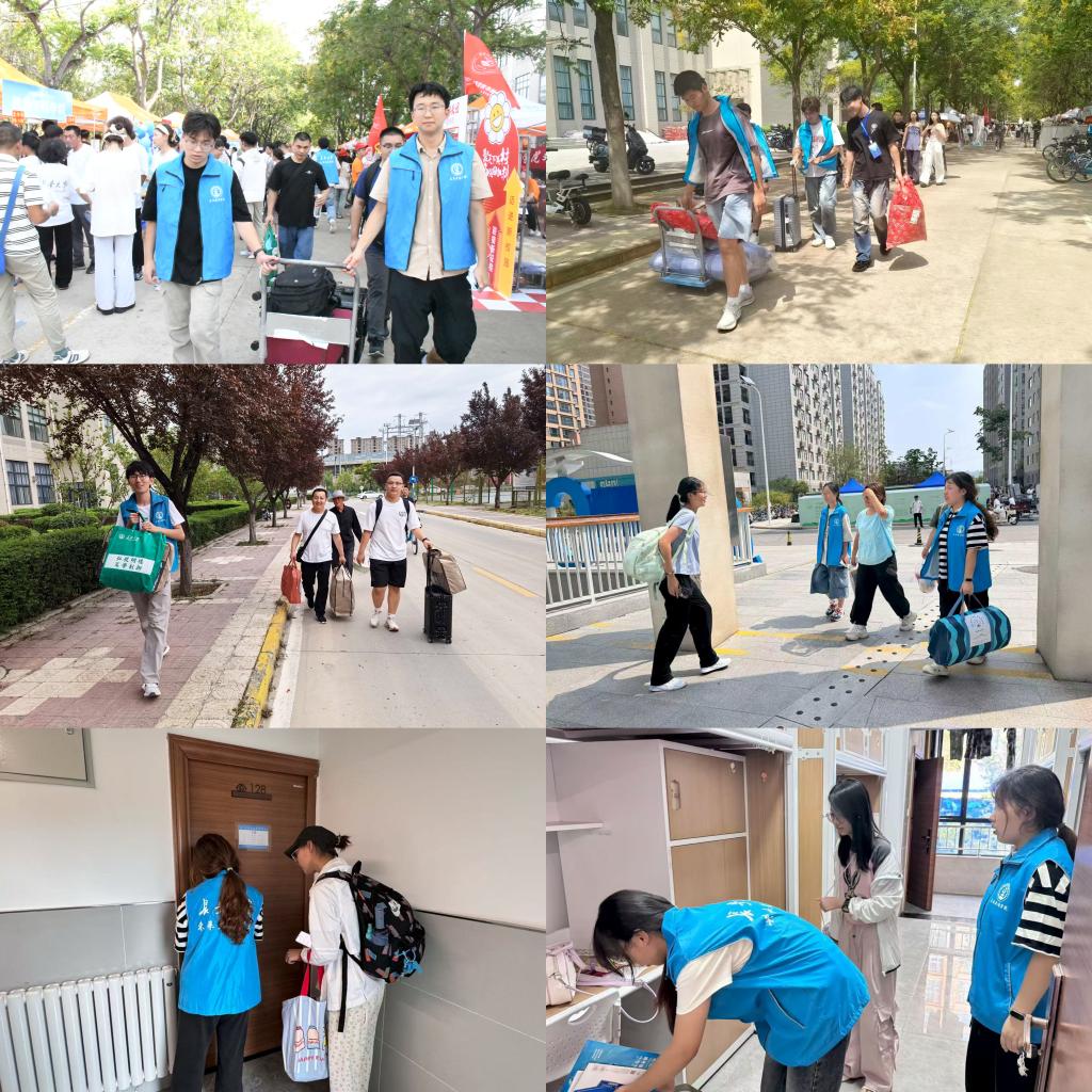 不辞辛劳地在宿舍与迎新服务点间“往返接力”