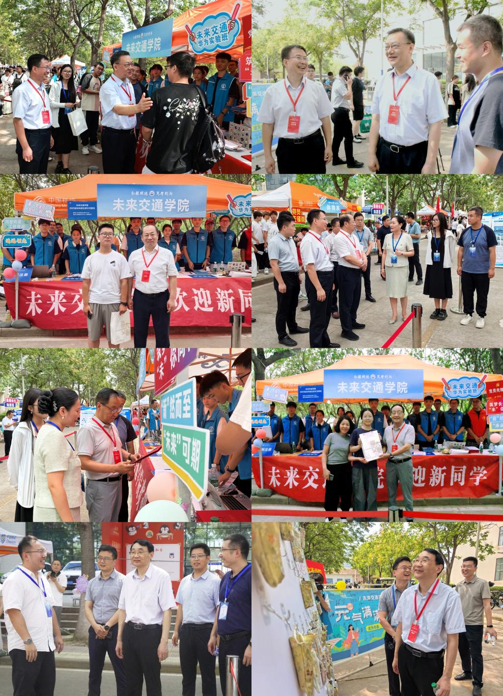 校院两级领导、班主任、辅导员老师们来到迎新服务点