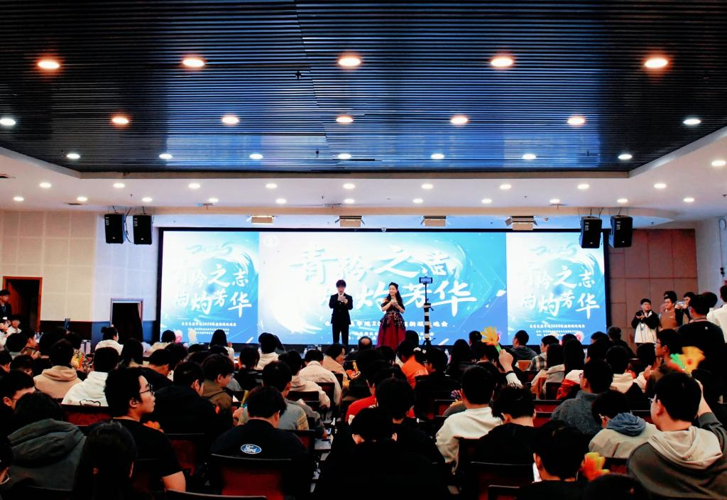 中场环节为晚会注入了温馨氛围,趣味与温情交织。飞花令成语接龙游戏中,八名同学组成两组登台竞技,成语接龙的紧张对决与超时后的趣味惩罚相映成趣,引来阵阵欢笑与热烈掌声。