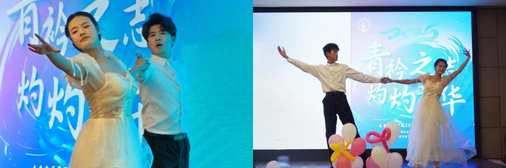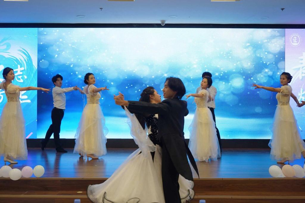 健身交谊舞协会带来的《翩跹》以优雅灵动的舞姿征服了全场观众。舞者们配合默契,灵动舞步在灯光下流转翩跹,完美诠释了交谊舞的优雅韵味与青春活力。