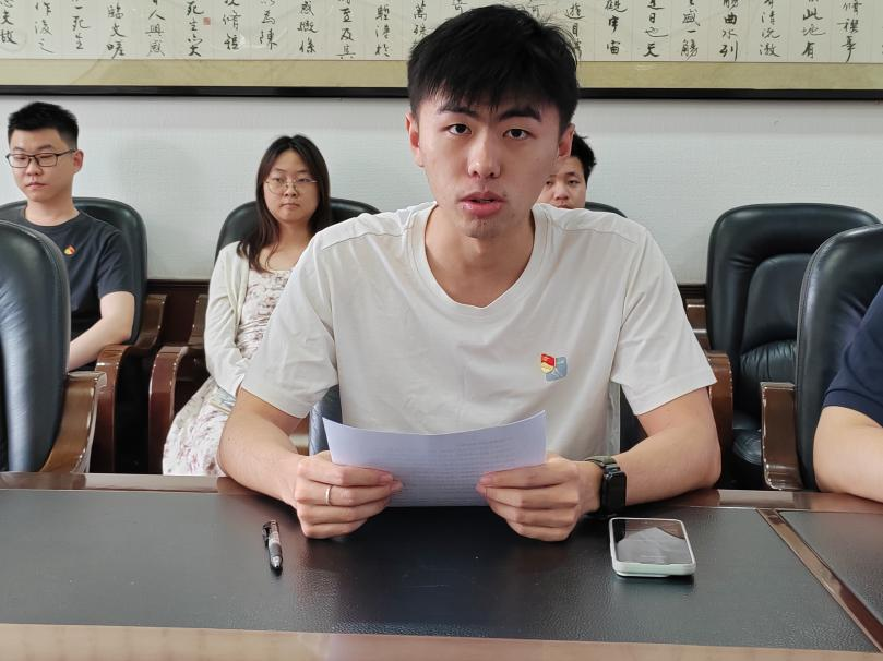学院青年领航发展中心秘书处负责人史剑旭领学了《习近平给新疆克孜勒苏柯尔克孜自治州阿图什市哈拉峻乡谢依特小学戍边支教西部计划志愿者服务队全体队员的回信》。习近平总书记在回信中向全国广大青年致以节日祝贺并提出殷切期望,强调广大青年要坚定理想信念,厚植家国情怀,练就过硬本领,发扬奋斗精神,到祖国和人民最需要的地方发光发热,为中国式现代化建设贡献青春力量。史剑旭倡导大家要牢记总书记嘱托,持之以恒用习近平新时代中国特色社会主义思想凝心铸魂,将“请党放心、强国有我”的铿锵誓言书写在推进中国式现代化新征程上,为强国复兴伟业贡献青春力量。