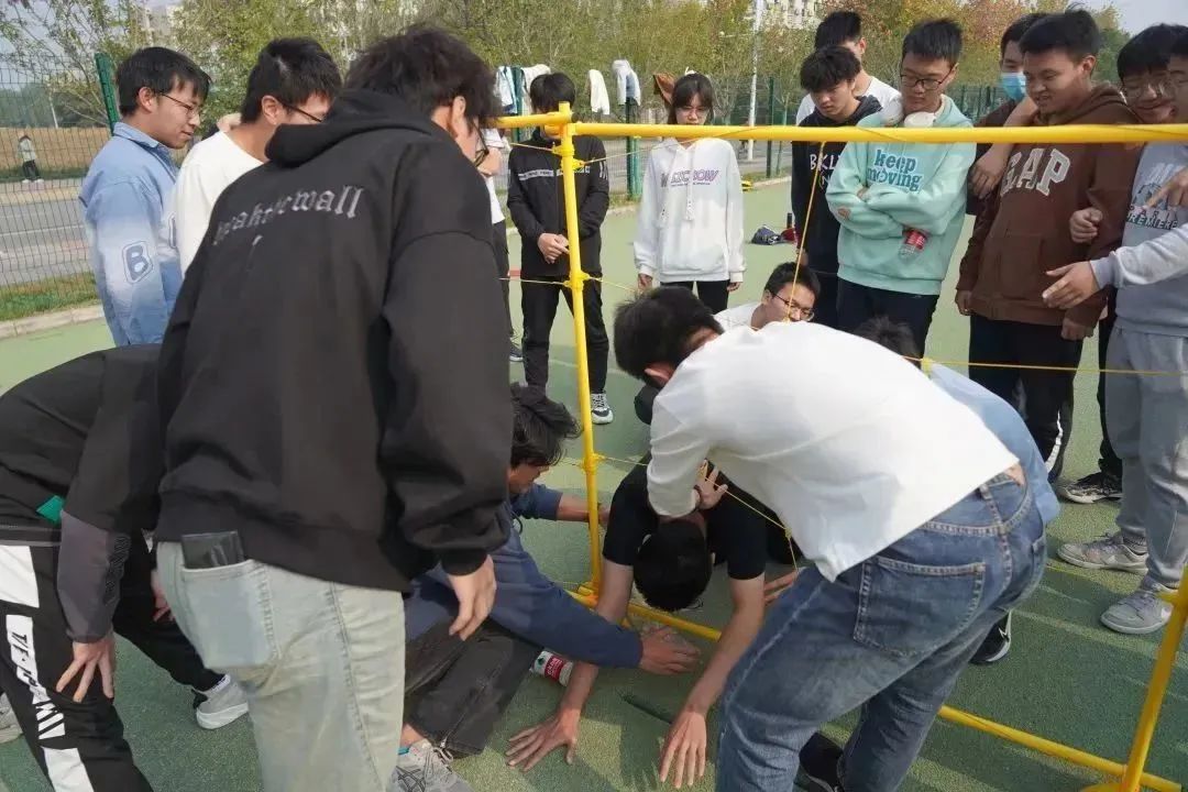 “松鼠大树”环节,展现了同学们的应变能力,一方面感受到来自相互之间的竞争压力,另一方面也体验到双方合作的温馨快乐,通过随机互动有效拉近成员之间的距离。“穿越火线”环节,助推本次活动进入高潮,让同学们深刻感受团队合作的力量,各团队负责人在有限时间内带领全员制定合理方案并将方案有效落实,充分展示了团队成员的集体意识与大局意识。“十指连心”环节,展现了团队建设过程中的高度契合执行力,通过不同的沟通方式来随时调整策略,从而达到共同目标。