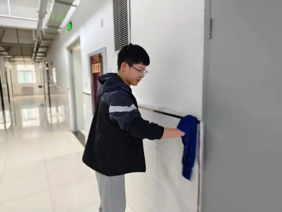 本次活动聚焦宿管工作职责,通过同学们的实践劳动,体验楼管阿姨的日常工作艰辛。杨海东为志愿者们详细说明任务分工,全体志愿者负责17号学生公寓周围的清扫工作,为宿舍环境做好清洁的同时中也为营造良好的宿舍氛围做出贡献,表现出了强烈的责任意识和突出的工作能力。同学们在沉浸式参与公寓管理工作中提升劳动能力、实现自身价值,获得了宿管工作人员的一致好评。