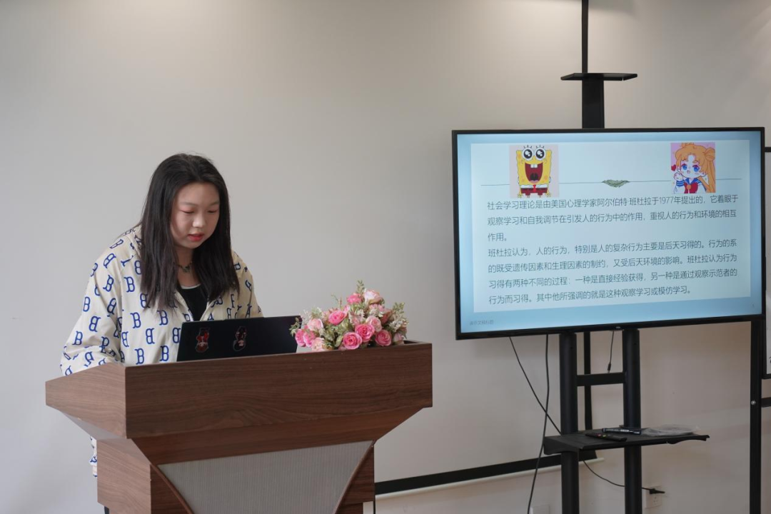 活动伊始,高添知介绍了活动背景及相关心理知识,她提到,班杜拉认为现实学习是创造性行为的一个主要来源。当观察者看到众多不同的榜样时,会影响到他们自己的创造性表现。在共同创作的氛围中,同伴的作品能一定程度上激发自身的创造力。