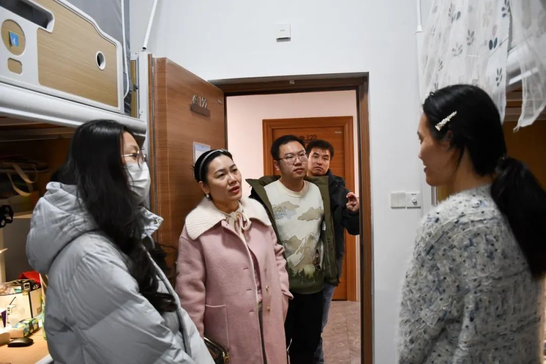 学院副院长汤颖颖和各年级辅导员深入学生宿舍,详细了解学生近期学习状况,特别关注学生的未来学习规划,为学生答疑解惑并提供建设性指导。在宿舍卫生方面,老师们督促学生保持良好的卫生习惯,打造整洁舒适的居住环境。针对宿舍安全,着重提醒学生全面开展安全隐患排查工作,对电器设备、电线电路等进行细致检查,做到防患于未然,通过强化安全教育,持续提升学生的宿舍安全意识,为学生的学习生活筑牢安全防线。