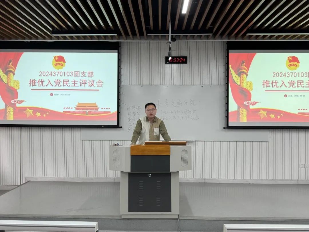 团委组织学院各班团支部开展2024-2025学年春季学期推优入党民主评议工作,各团支部全体成员到场参会,院学生事务部主任刘志兴、院团委书记曾晓阳及各年级辅导员全程指导监督。