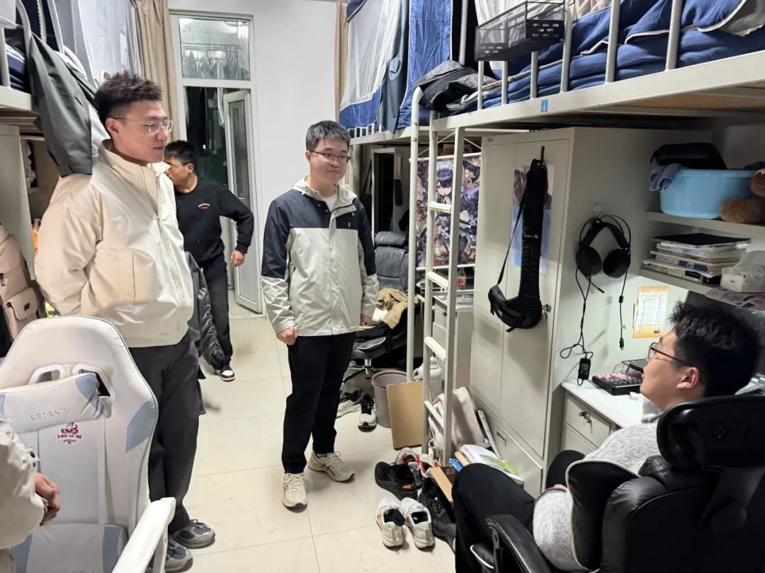 2024级本科生在新学期开启整洁、安全、温馨的成长新程,点燃大家的学习热情与生活活力,3月6日晚,班级朋辈导师张瑞轩、李郅、姚宇航、张子昊走进2024级本科生宿舍,了解同学们的生活、学习状态,听取同学们近期的困难和诉求。