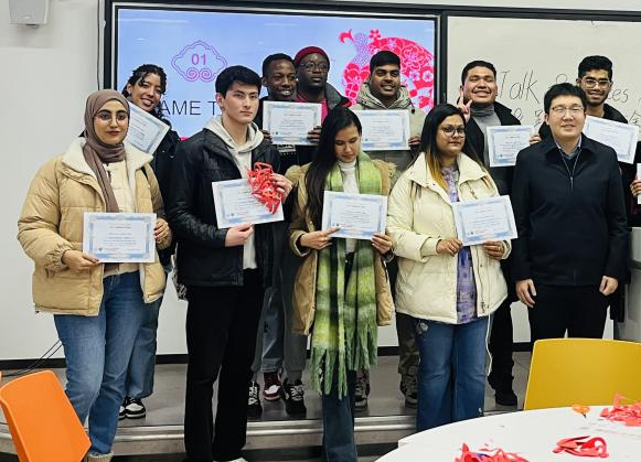 活动尾声,各学院学生会负责人为在互动中表现优异的学生们颁发了双语奖状。参与者们手持剪纸作品与证书合影,为活动画上圆满句号。