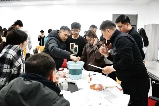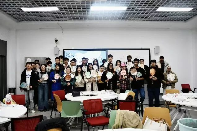 激动人心的实践环节将气氛推向高潮,中外学生分组协作,亲自动手创作属于自己的漆扇作品。在创作过程中,同学们互相交流、彼此启发,赞叹声和欢笑声此起彼伏。随后的“Free Talk”环节,学生们介绍了自己钟爱的英语作品,这些交流不仅展现了英语作品的独特魅力,更让同学们在分享中锻炼了英语口语表达能力,进一步增强了同学们的自信心。