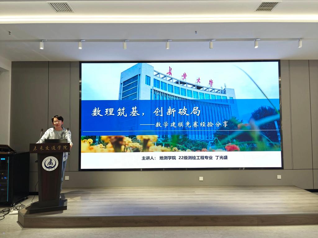 丁光盛从赛前准备工作、赛题选择和赛程规划安排等方面向同学们分享了参赛经验。他指出,队伍成员的合理分工与紧密协作是确保比赛有条不紊进行的重要基础,同时应当正确应用各类专业软件以及AI工具辅助论文的撰写,高效推进任务进度。丁光盛着重强调了赛题选择的重要性,建议同学们合理规划各项任务的时间安排,鼓励同学们认真审题,选择适合的题目并克服困难在规定时间内完成论文。