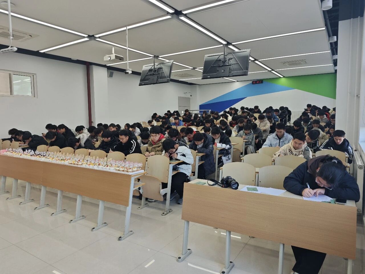 为表达新年祝福与深切关怀,范荣欣还为大家准备了一份特别的惊喜——写有每一位同学姓名的小蛋糕。121份小蛋糕在讲台前汇成一片,象征着独播库