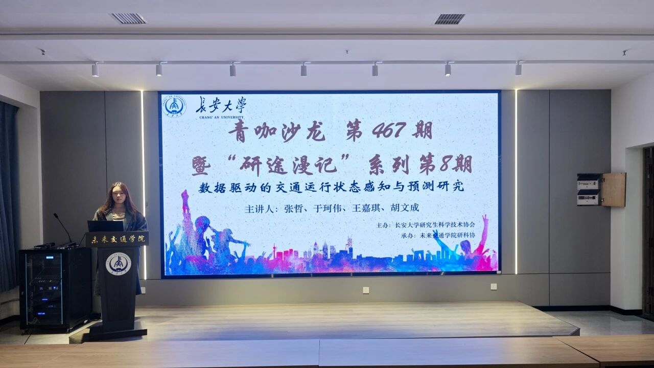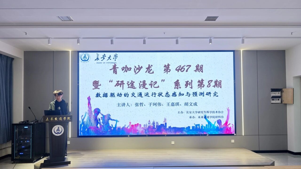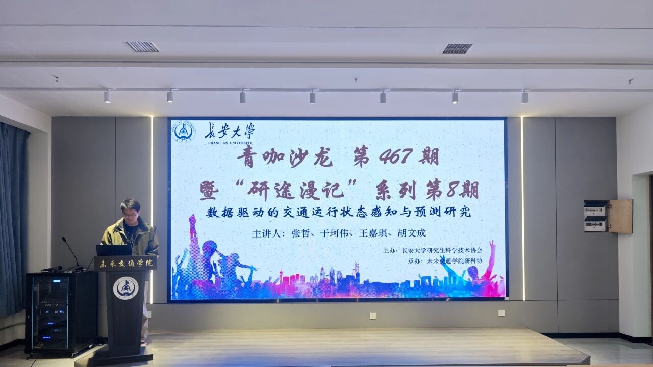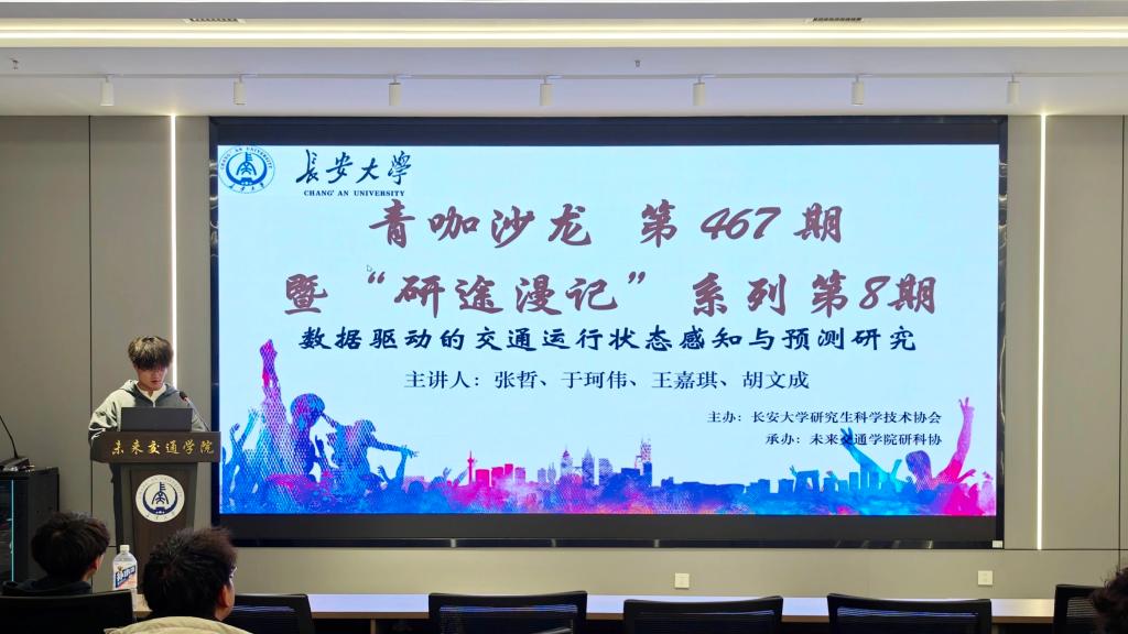 交通运输工程专业2024级硕士研究生张哲、于珂伟、王嘉琪、胡文成受邀围绕“数据驱动的交通运行状态感知与预测研究”主题作专题报告,学院20余名研究生参加。