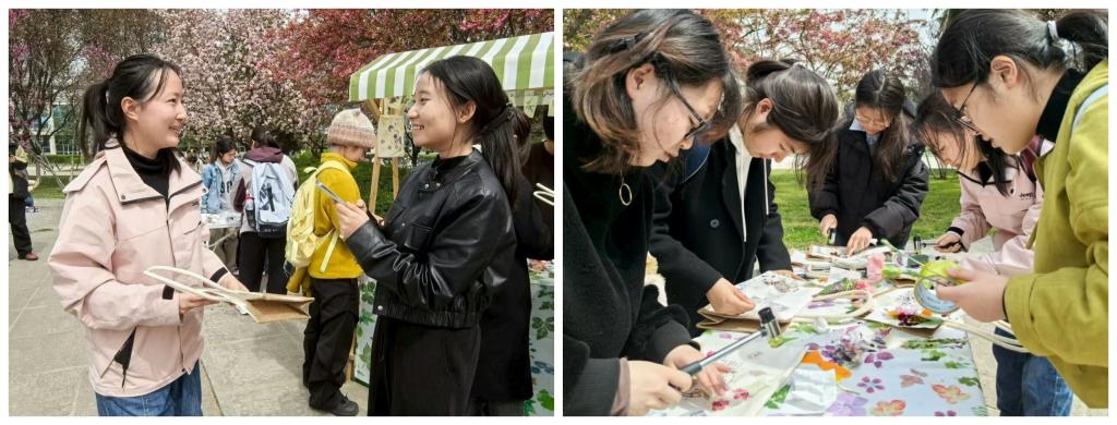 完成创作后,同学们纷纷与自己的作品合影留念,现场气氛温馨而愉快。本次活动以自然为媒,以艺术为桥,为同学们搭建起放松身心、感知自然之美、记录成长瞬间的艺术疗愈平台,在繁忙的学习生活中守护同学们的心灵健康,以温柔而有力量的方式滋养心灵。