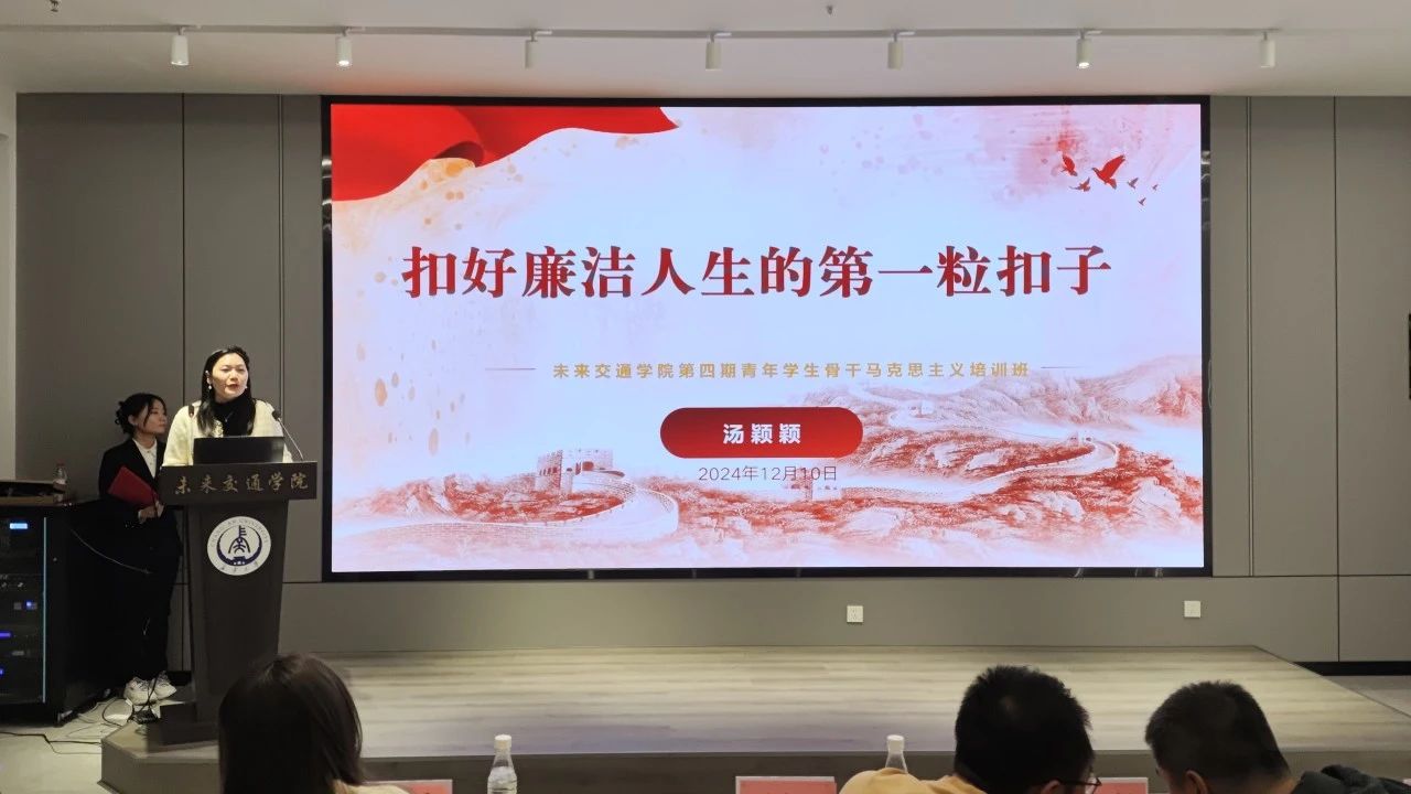 开班仪式结束后,汤颖颖以“扣好廉洁人生的第一粒扣子”为题作第一讲报告。她通过与学员趣味互动的方式,结合具体案例和问卷调查,形象生动地解释了廉洁的具体含义,强调了廉洁文化的重要性和对大学生发展的关键作用,循序渐进地引导学员应将廉洁自律切身落实到学习生活中。同时她也指出大学生在廉洁教育方面存在的不足,号召学员们要主动学习中华优秀传统文化,认认真真读书,踏踏实实做人,努力提高自身的文化素质和道德水平,在学习生活中遵纪守法、倡导廉洁、反对腐败,一切荣誉利益获得必须通过自己的拼搏奋进、合法争取,做一个廉洁修身的优秀大学生,努力成为堪当民族复兴重任的时代新人。